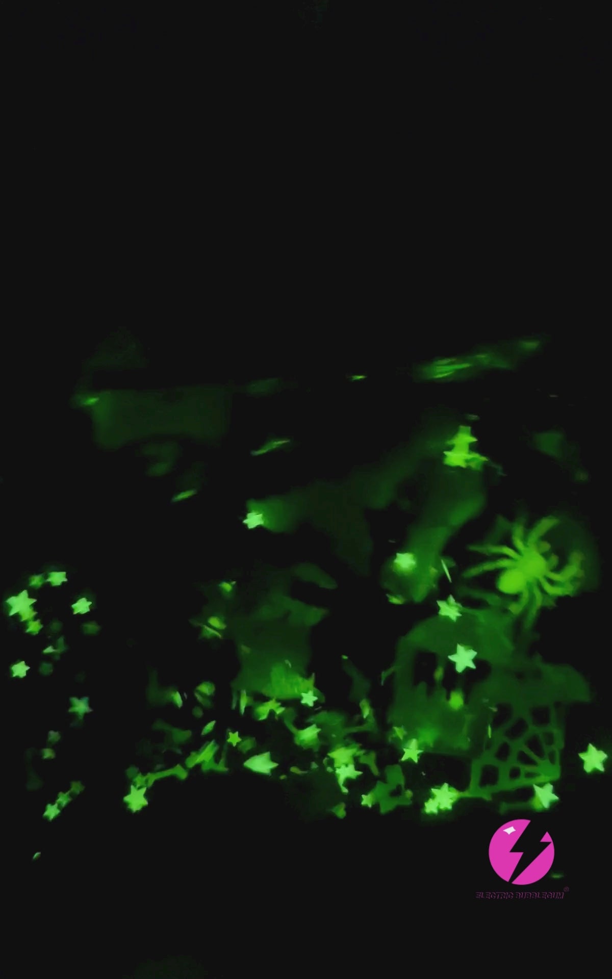 Glitter - Black, green and white skeletons, bones, gravestones, webs, spiders, bats and stars.