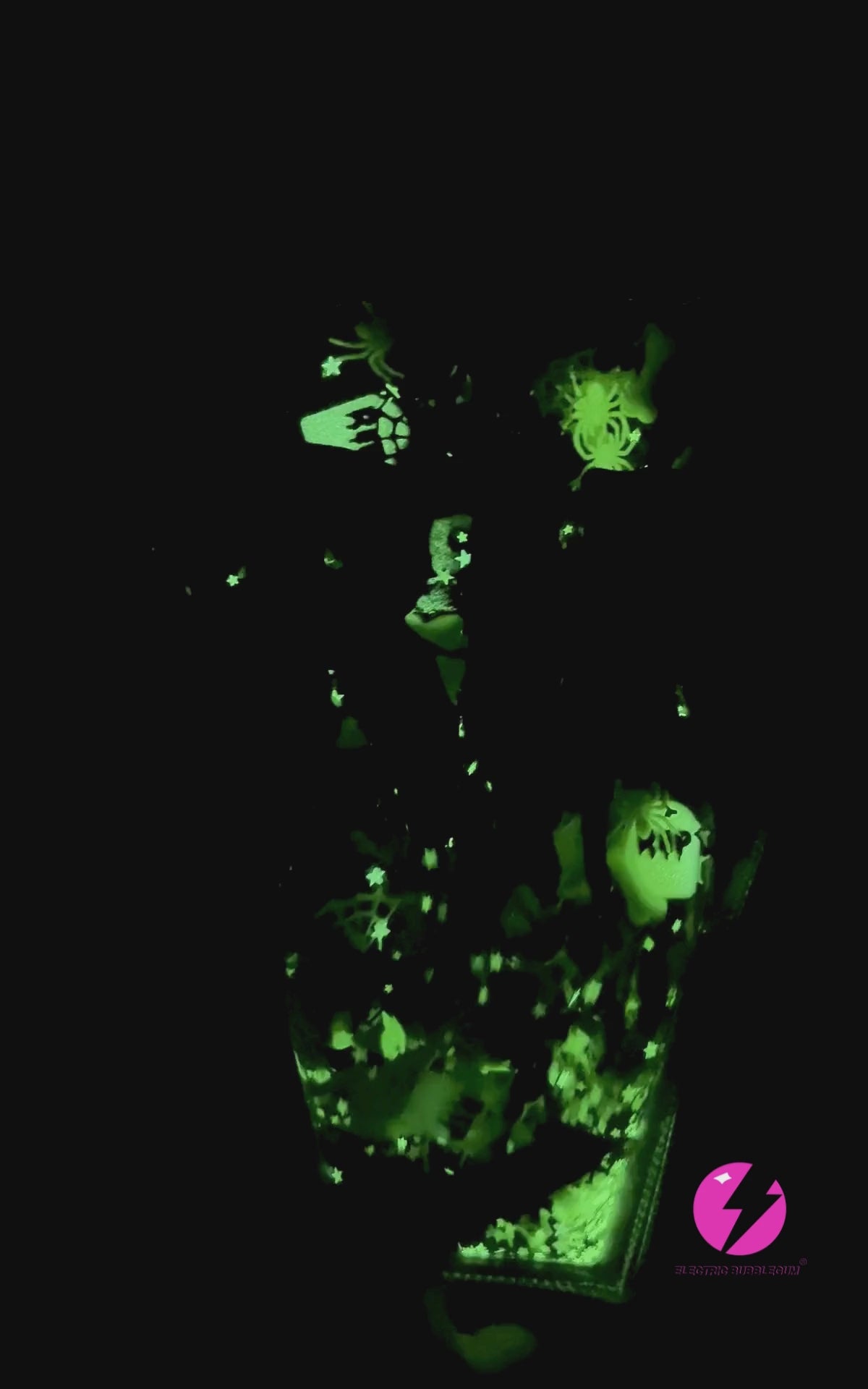 *Purse has a combo of glow glitter and regular glitter. Gravestones, spiders and stars glow in the dark!