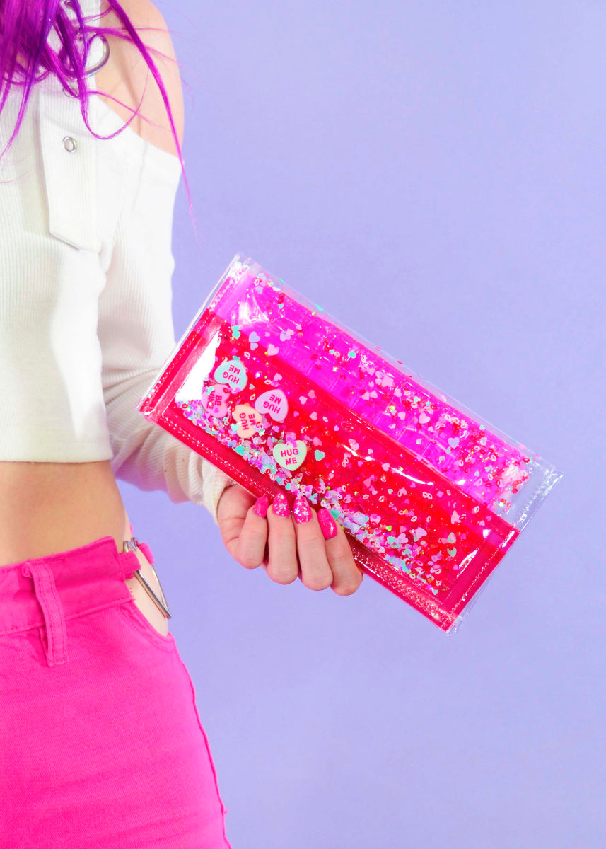 Liquid Glitter Mini Zip Purse - Be My Valentine