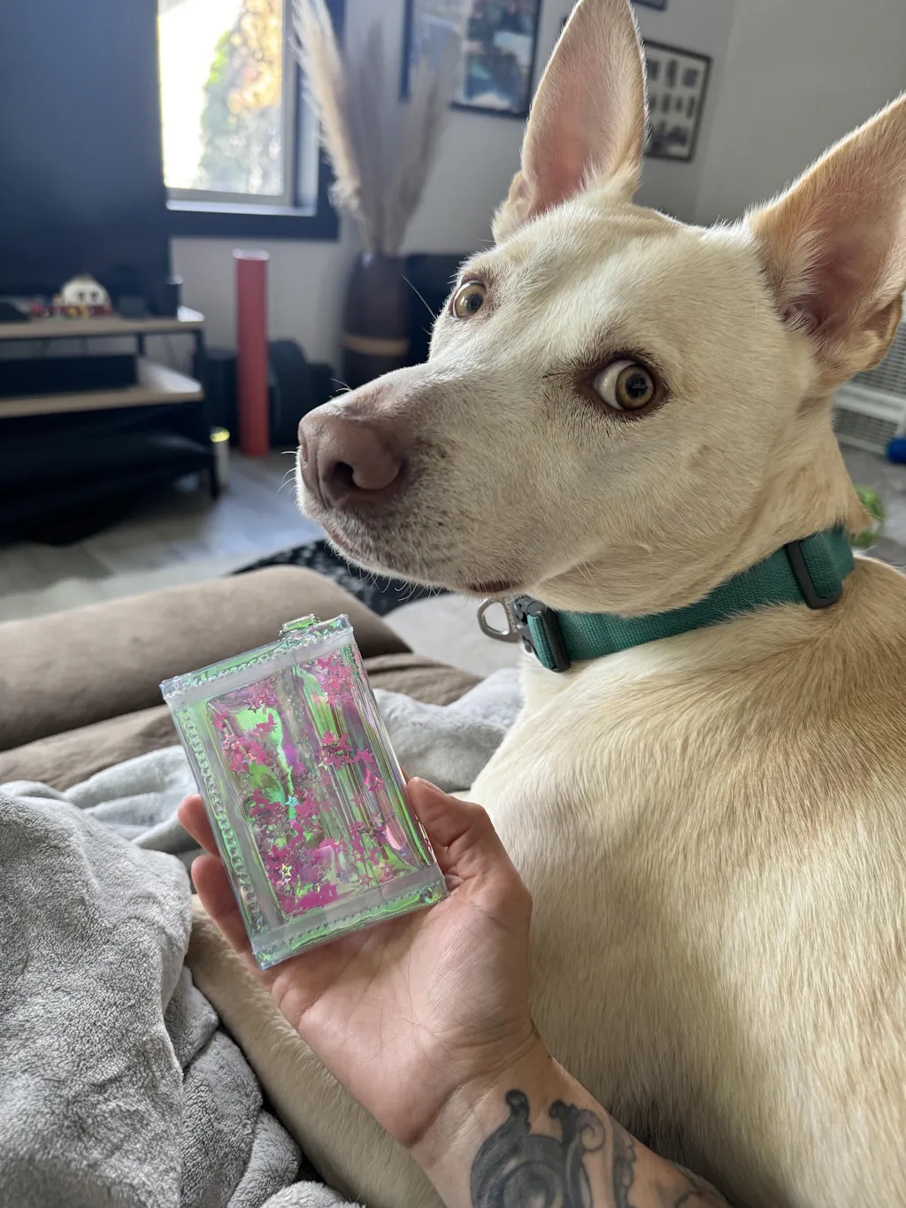 Need that perfect teeny tiny wallet when you don't want to lug around a lot of stuff? This is it! Its perfect for just storing the essential cards and it is made out of iridescent vinyl filled with cute liquid glitter that floats all around. Features a snap closure and a keychain hook to hook it to your keys.
