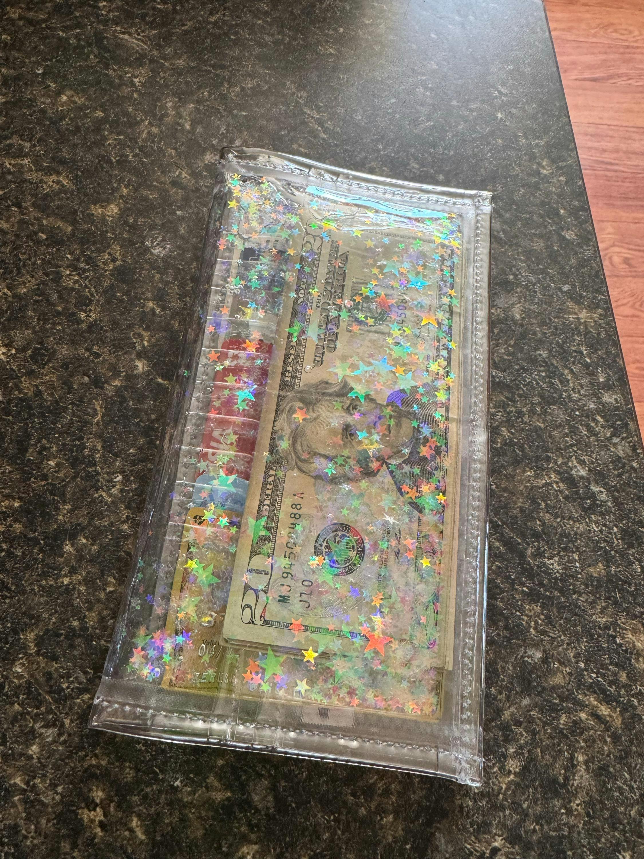 Make storing your cards and money fun and sparkly with this adorable, liquid glitter wallet!