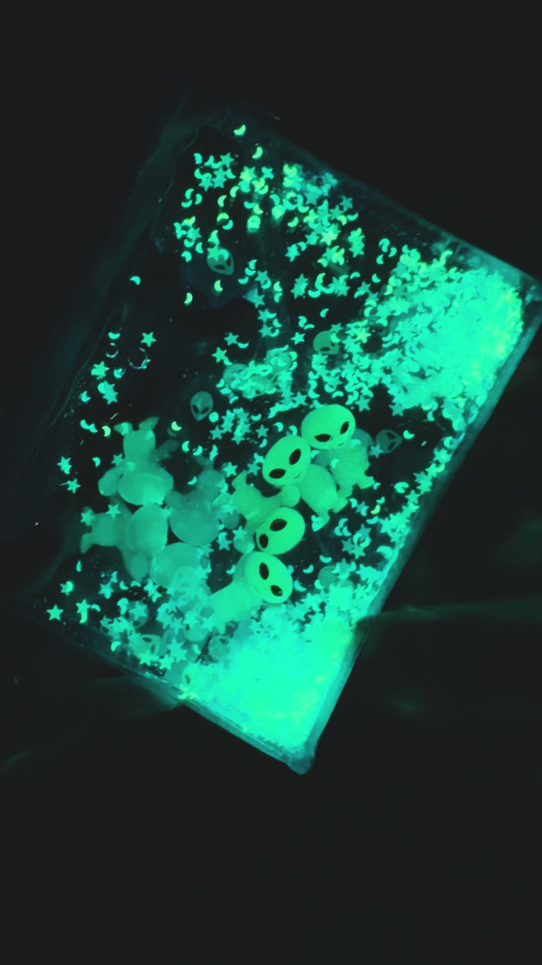 Glitter - Glow-in-the-dark stars, moons & alien head glitter / large glow alien figures