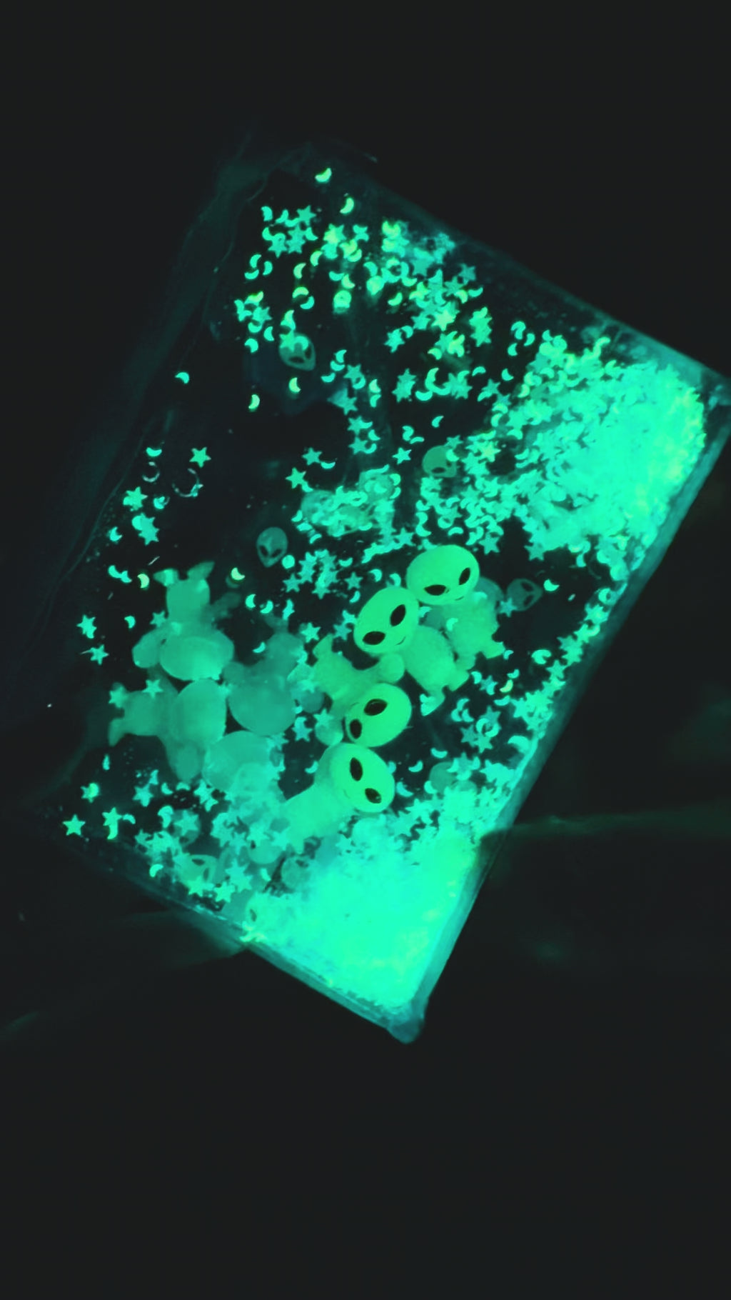 Glitter and aliens glow the best when charged in bright light! π